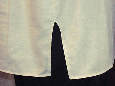 This shirt is available in a variety of materials including a polished cotton/poly blend, 100% Egyptian cotton (high thread count), fine (bridal weight) satin, or linen. After purchase, you will be sent an email allowing you to choose the color of your collar button and provide the measurements we need to complete your shirt. Since this is a more fitted shirt, accurate measurements are very important.