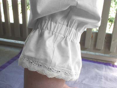All seams have been serged and the inner seams have been serged and sewn flat for extra comfort and durability. Everything on the bloomers is durable and washable. You may substitue elastic for the drawstring waist (we strongly recommend the drawstring, however). Just email us for details.