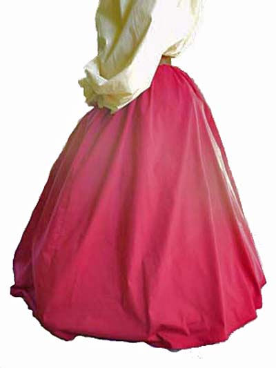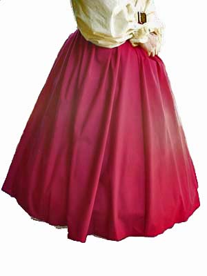 A basic item of every high ladies wardrobe is the cotton skirt, and the more the merrier I say! Whether you are a noble or a washerwoman, this skirt is beautiful and durable and will add versatility to your wardrobe. You can layer it with another of our skirts and tuck a bit into your belt for a saucy peasant/wench look or use it as an underskirt with a fancy gown. As you can see from the pictures, the skirt is full enough to wear over a hoop (farthingale) as well and would look striking on its own.